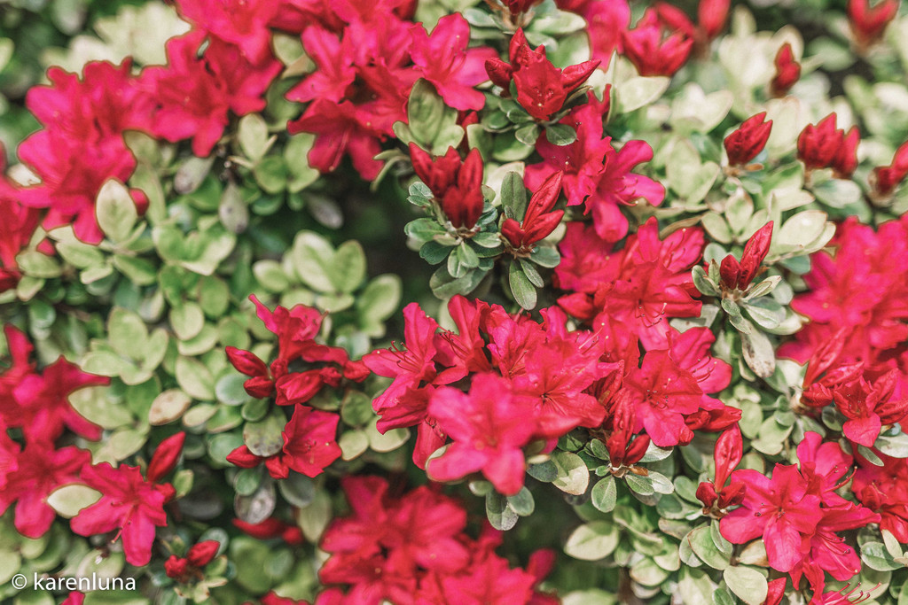 除了网红鸟居隧道和浓厚的文化气息之外,那开满杜鹃花的后山也是神社的一大亮点。近6000平米的杜鹃花园里种植了近50种共3000多株的杜鹃花,每到春天,各个品种各种颜色的杜鹃花争奇斗艳,满是一副花的海洋。只可惜我去的时候还是杜鹃花初开时节,并没有看到鲜花满开的盛况,不过穿着和服漫步在五颜六色的杜鹃花丛中,也是春意盎然美丽灵动。
