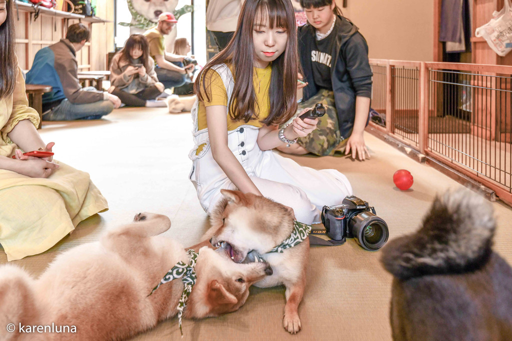 网红咖啡厅里,萌宠豆柴肆无忌惮的打闹玩耍着;