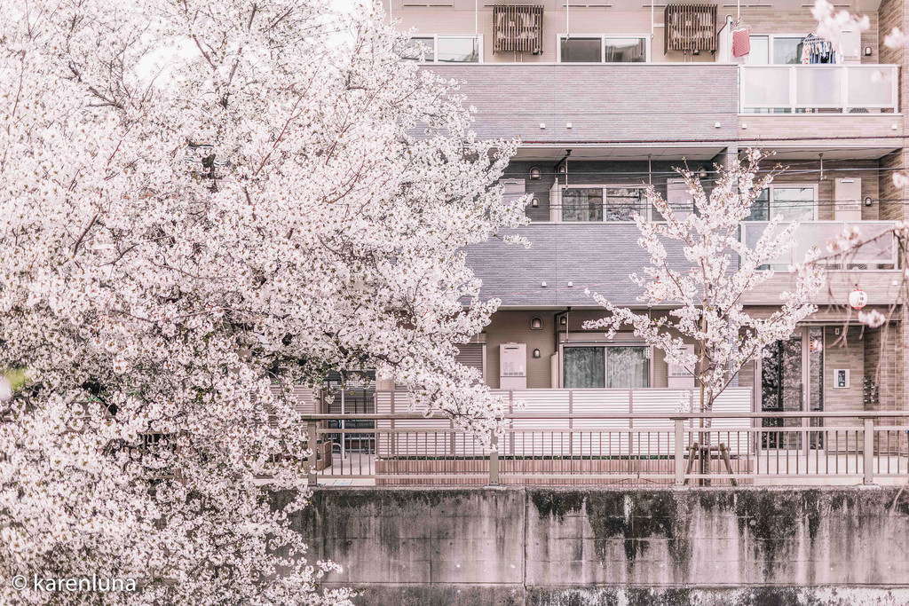 公寓位于居民区内,所以周围都非常安静。并不会被驶过的地铁而被打扰。周围还有个街心花园,到达那天,很远处就看到了开得正旺的樱花探出楼宇间。看到赶上了满开时节的樱花真的太好心了!
