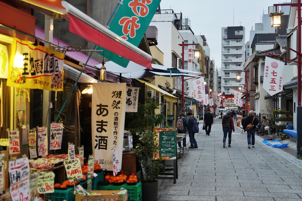 门前仲町的成田山老街道的街两边都是几十年甚至上百年历史的老铺,老街附近就是「深川不动堂」,其实我们所说的门前仲町,过去就是作为「富冈八幡宫」、「深川不动堂」等寺庙的门前町而繁荣起来的。