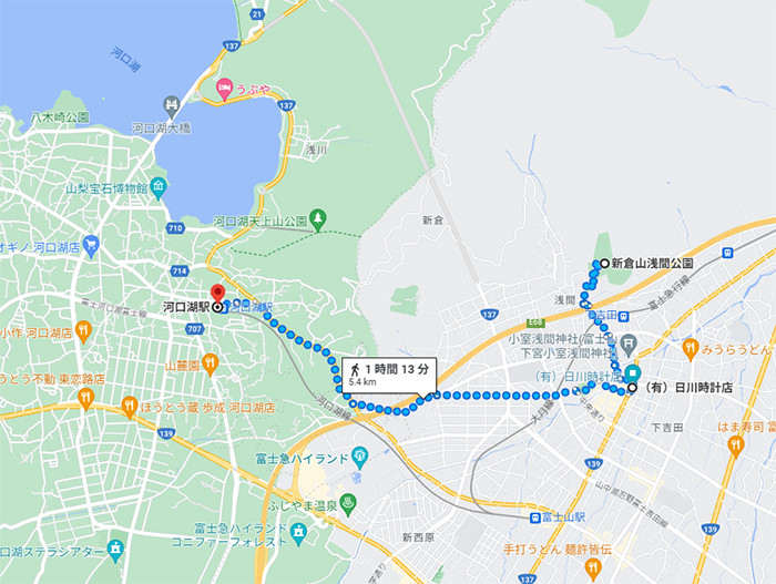 从河口湖站经过网红街日川时计店,再前往新仓山 浅见公园单程5.4公里