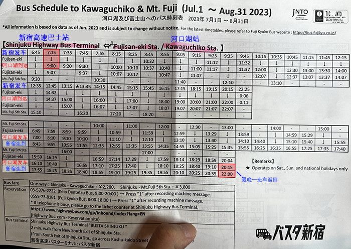 从东京新宿前往富士山河口湖乘坐巴士和火车