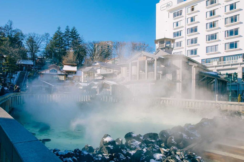 草津温泉虽然位于 群马县 ,但是从 东京 前往的交通非常便利,如有你有JR pass,比较省时的方式是从 东京 出发坐北陆 新干 线,在 东京 或者上野站上车到达 轻井泽 ,在 轻井泽 巴士站乘坐草轻巴士到草津温泉站,耗时约2小时30分钟。