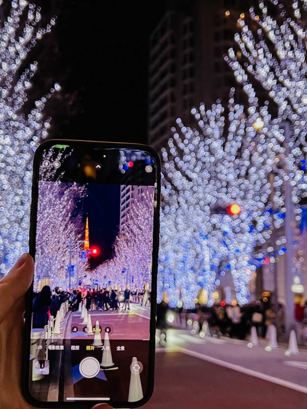 年末的 东京 街头,到处都是浪漫的节日氛围,随处可见的圣诞树和灯光秀,璀璨如星,如梦似幻。