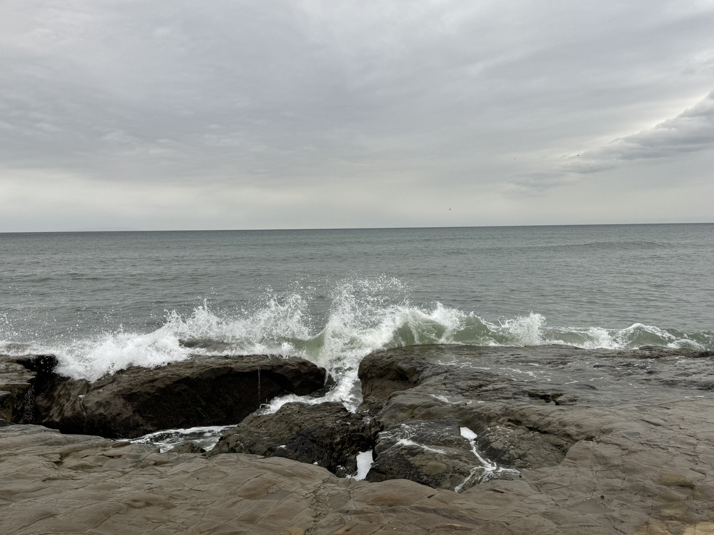 午餐后,我们走到七里滨车站,虽然车次有点延误,但毕竟恢复通车了,继续搭乘江之电。强烈推荐稻村崎站这个小众站点,步行几分钟有个海滨公园,在这里的礁石上感受大浪拍岸。