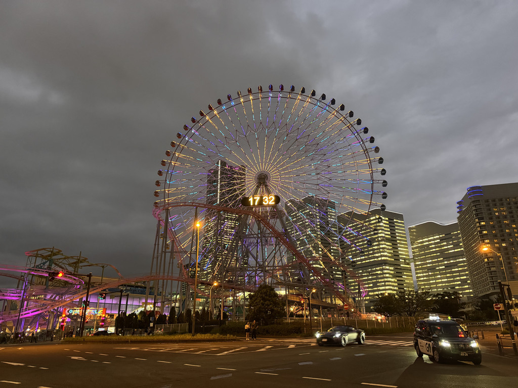 仓库西北步行可到摩天轮的脚下,连带一个有粉色过山车的乐园。晚上的摩天轮夜景更是漂亮,据说是世界上最大的带有时钟功能的摩天轮,不停地变换各位花纹。对面是个人气很旺的拉面博物馆,我们没有参观博物馆,就在商店里买了包装很可爱的干脆面。