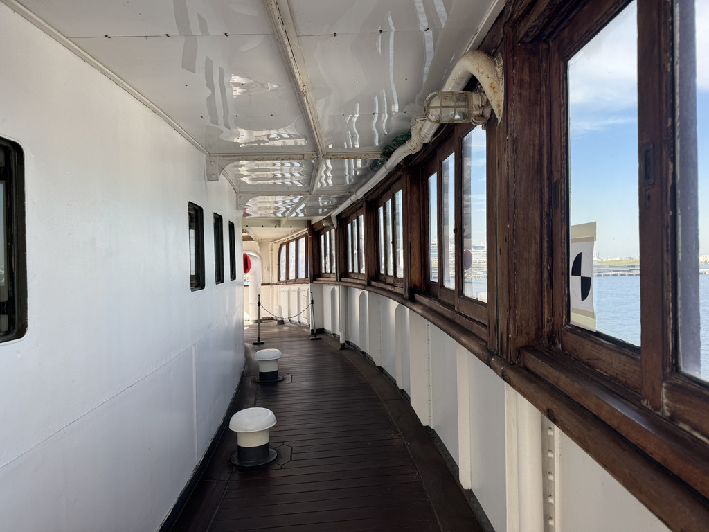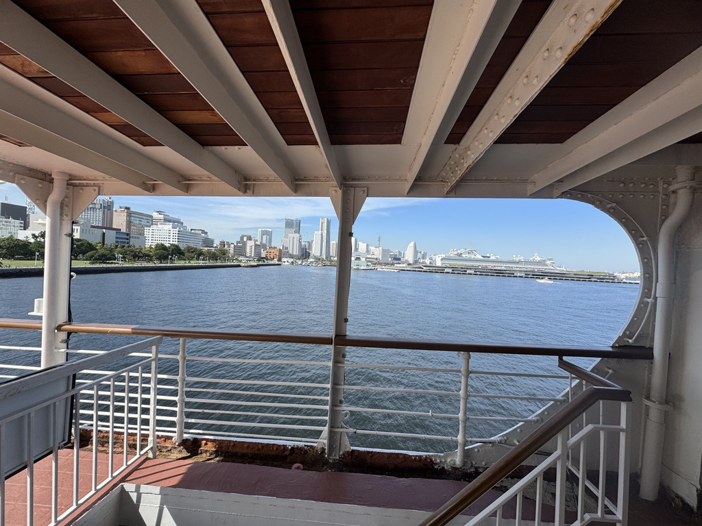 10月8号那天退房后,我们上了在公园的码头边停靠的冰川丸邮轮,这已经成为了山下公园的标志。冰川丸之前行驶于日本与西雅图的定期邮轮,是当时日本最高级豪华的邮轮,退役后,被改装成博物馆的形式对外营业。我们付费参观内部300日元一个人,船舱内的黄铜仪表与皮质沙发凝固了昭和时代的奢华。可在甲板上远眺海湾大桥,但是不知道为什么我们几个人却没有上甲板。推荐参观邮轮。