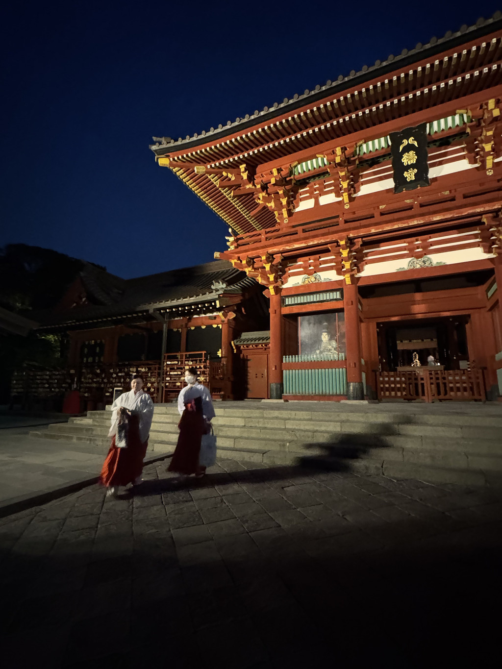 傍晚时分再次坐电车在镰仓站下,先在站前和女儿一人一支抹茶冰淇淋,只是两个人选择的抹茶浓度不同,我挑战了最高浓度level max的,甜味淡但是不苦,非常好吃。然后随意在街头晃晃悠悠,细细体会小城的闲适。小町通两旁店铺林立,每一家店铺都是浓浓的日本风情。一路步行,尽头是鹤岗八幡宫,来得太晚了,已经下班。