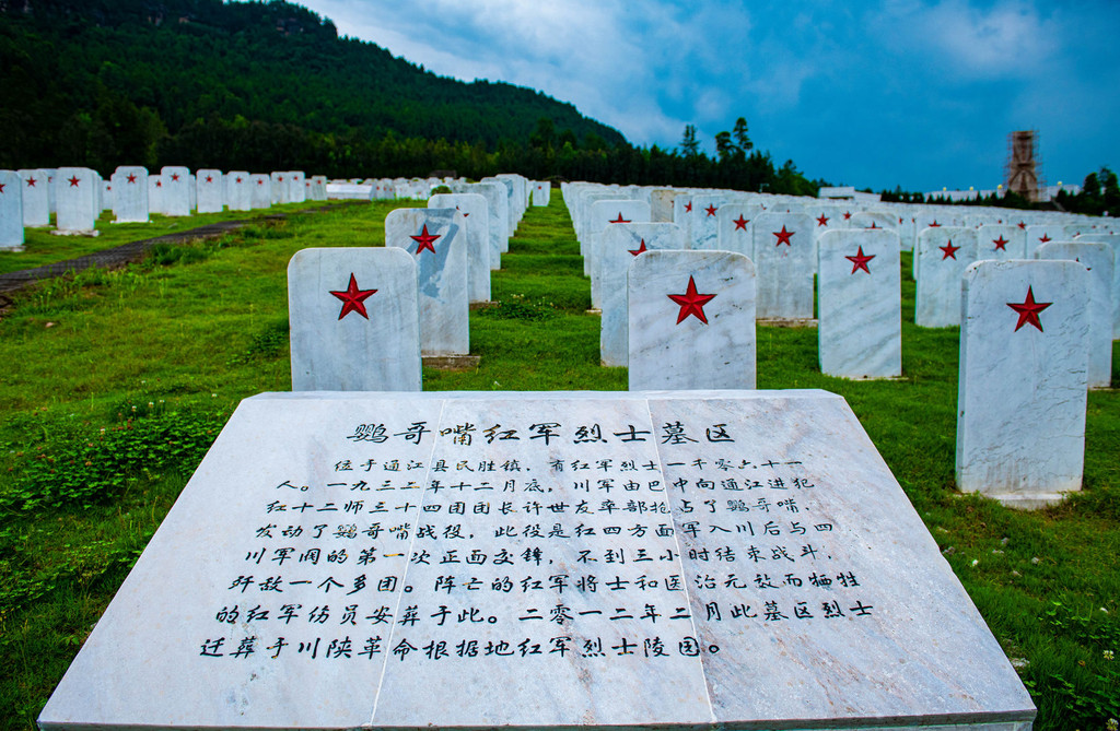 川陕革命根据地红军烈士陵园始建于1934年,历年对陵园进行改建和扩建。陵园由铁血丹心广场、千秋大道、陵园核心区、散葬墓区、纪念馆等部分组成,分布着铁血丹心主题雕塑、英勇烈士纪念碑、红军烈士集墓区、无名烈士纪念园、英烈纪念墙、总医院旧址群、“赤化全川”石刻标语等景点。在这个全国安葬红军烈士最多、规模最大的红军烈士陵园里,长眠着25048名红军烈士。