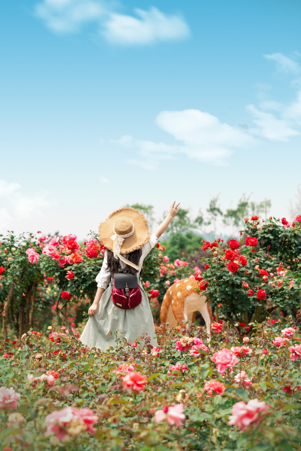 点击此处添加图片说明文字重庆周边五一小长假开启,去哪儿玩呢?重庆主城出发,自驾游1小时就到的玫瑰花海可感兴趣?大片大片的三色花墙,蜂飞蝶舞的浪漫场景,你是否心生向往?有这么一个地方,开满了各色玫瑰花,蓝天白云下的花田小径美得像童话世界里的绿野仙踪~