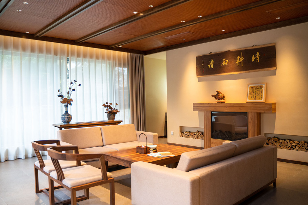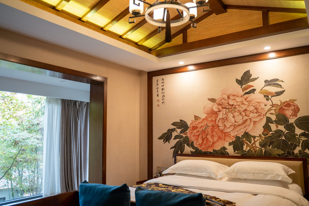 房间内的大落地窗更让我喜欢,朝向山林一整面落地窗的设计,窗外的秋色让人倍感舒适。