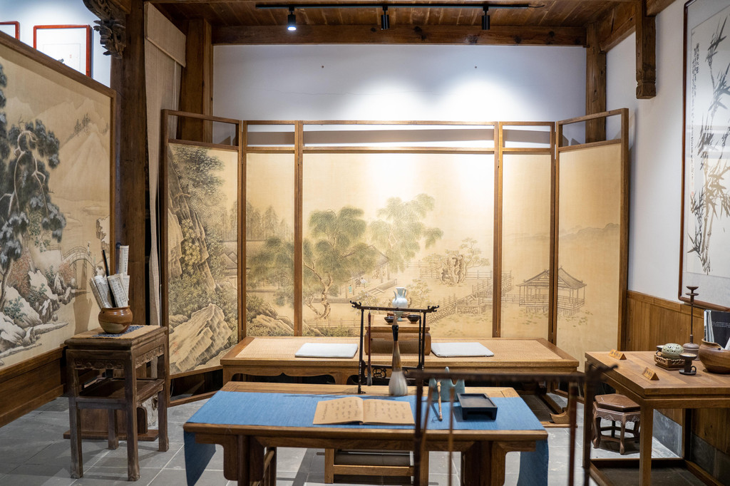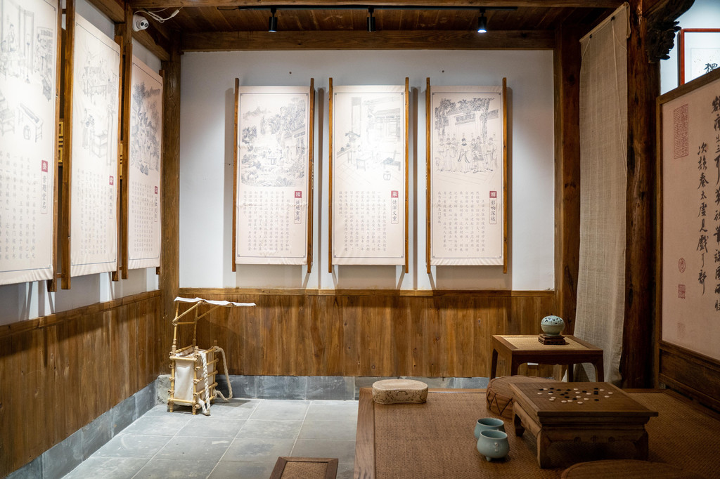 正堂的左右两侧分别有个偏厅,用屏风相隔,左侧的偏厅墙上挂的都是王安石的一些诗句,这里曾是王安石和朋友们对诗下棋的地方,而在正堂右侧的偏厅则是王安石讲学的地方,如今的场景还原了曾经的模样,在这里也可以端坐在桌前体验一番曾经的读书人。