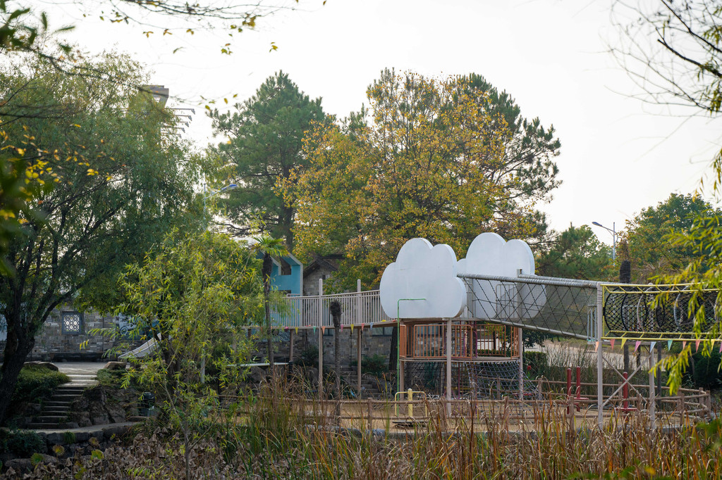 对于小朋友来说,儿童乐园就像是童话故事一样吸引着它们,江南童话坐落于度假区的外围,临河而建。