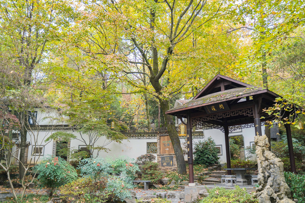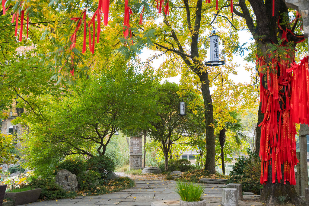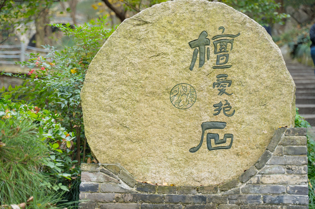 沿着阶梯拾阶而上,可谓是一步一景,从山脚到山顶共有12景,也因此得名忆江南12景。十二景的名称亦颇有文化艺术气息,檀爱抱石、枫林唱晚、乱石听涛、七星采樵、天书问道、竹海无忧、涵波望江等等,将这大自然鬼斧神工与人类巧夺天工的艺术结合展示出如许诗意浪漫。