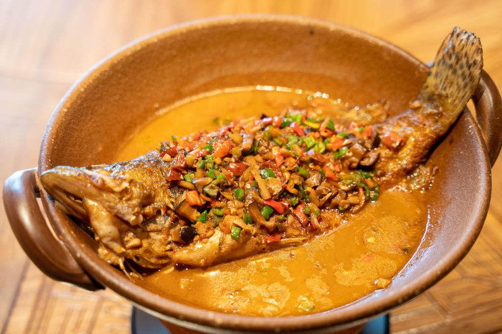永泉臭鳜鱼,臭鳜鱼是徽菜中最为知名的一道菜,也是徽菜“盐重好色,轻度腐败”特色的极致体现。特殊腌制的臭鳜鱼,闻起来带着臭味,但是却让鳜鱼的肉质依旧保持细腻,这道菜的口感滑嫩,醇香入味,是这里的一道特色菜品。