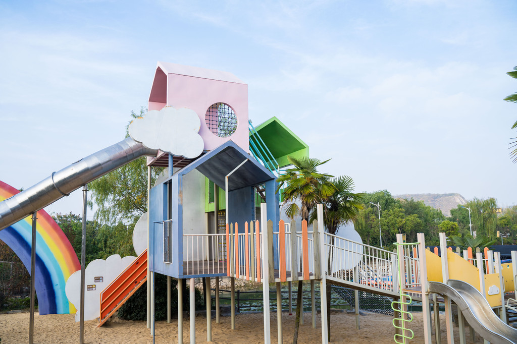 看着沙滩上这五颜六色的房屋滑梯,真的就好像是童话故事里描述的一样,在这座儿童乐园内,还有着手工坊、海洋球乐园、游湖、喂鱼、沙滩应有尽有!