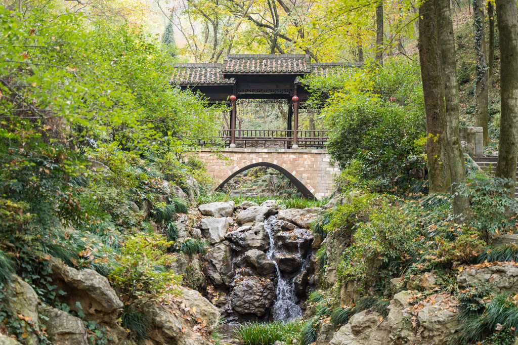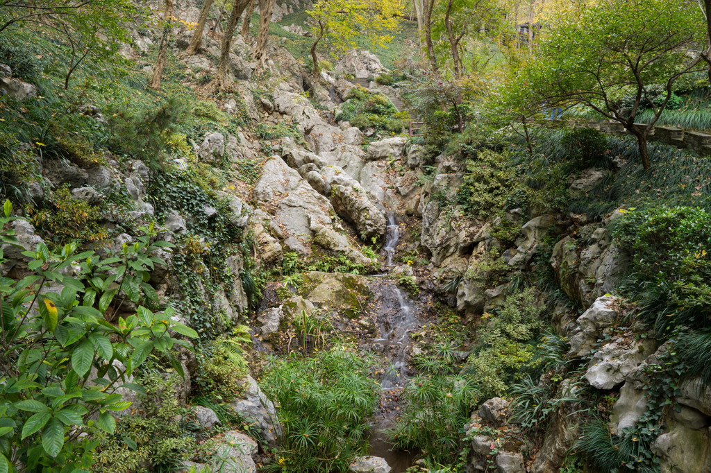 站在起点向上仰望,只见一泓泓山泉蜿蜒而下,两旁的草木茂盛,从山顶到山脚,遍布在整座山上,在这里感受如诗如画般的意境。