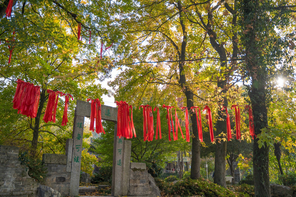书堂的对面便是枫林唱晚景点,“停车坐爱枫林晚,霜叶红于二月花”,枫叶正红,让人忍不住驻足留恋。