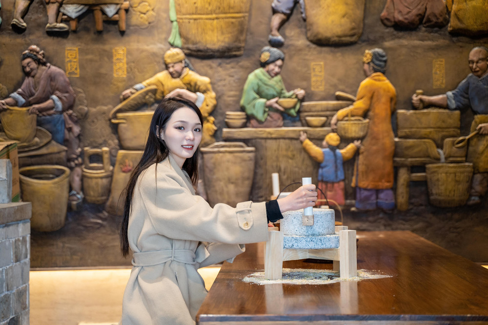 在这里,不仅可以品尝到美食,还可以参与一些美食的制作体验,比如在豆腐坊磨豆腐。