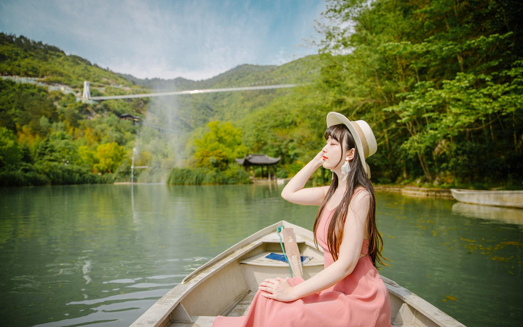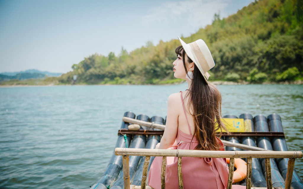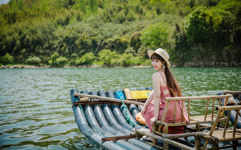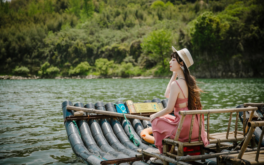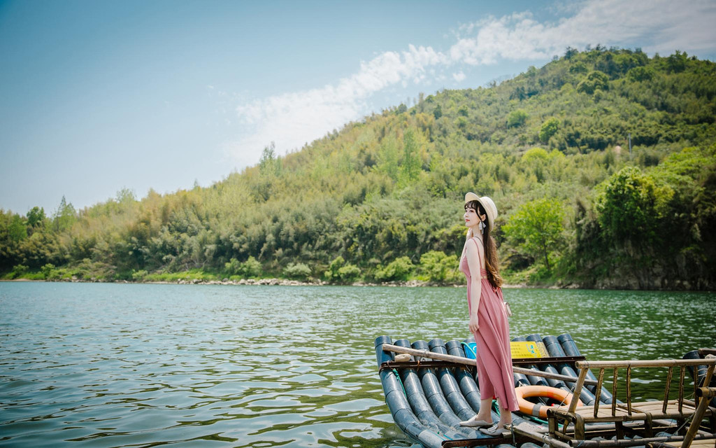 趁着人少,上下船的时候顺便留下两张人像照片吧,安静的徜徉于山清水秀的风光中,溪流清丽,溪岸姿雄,溪滩开阔,绿地相连,舒心之感也就油然而生~