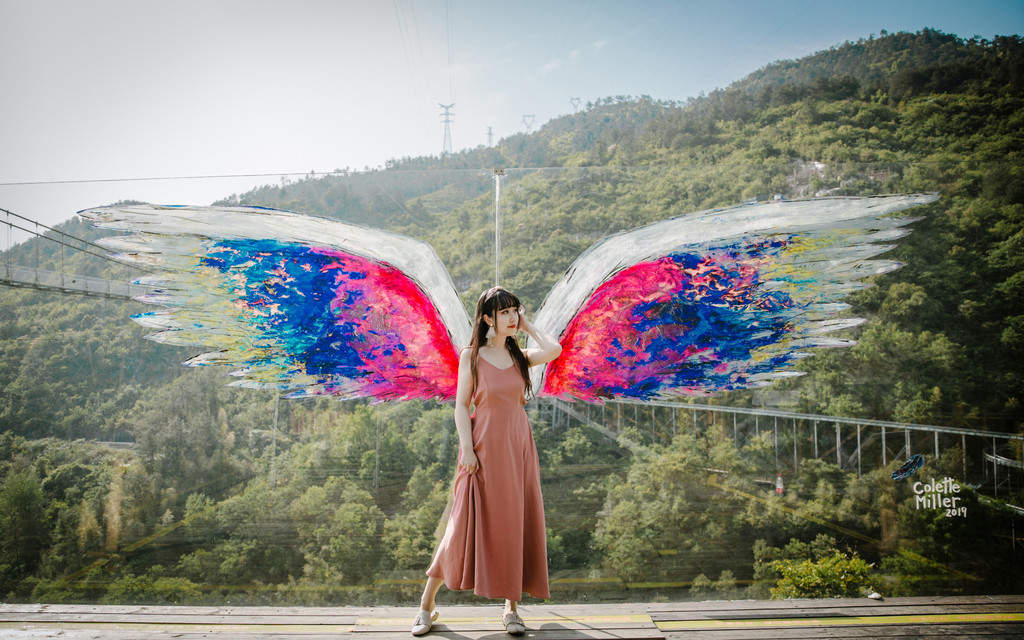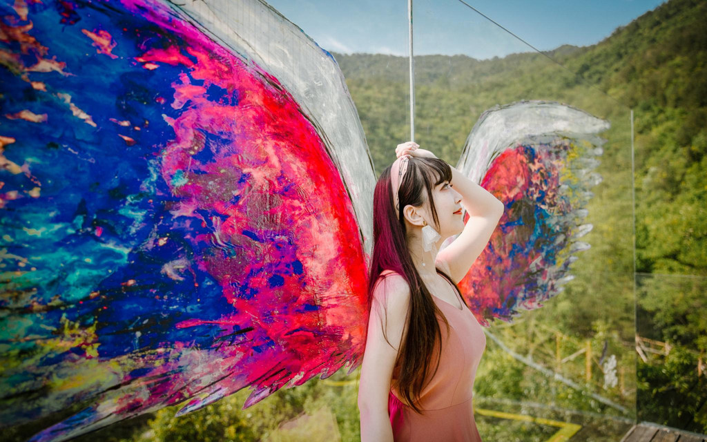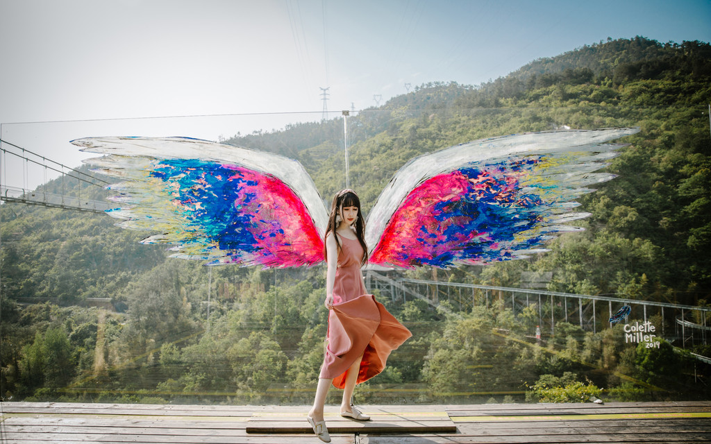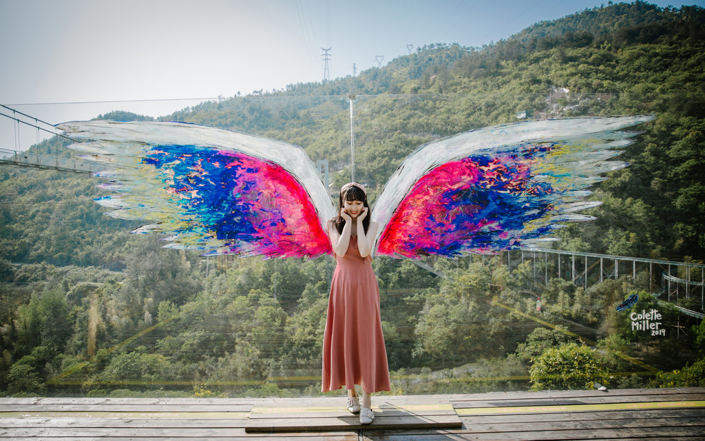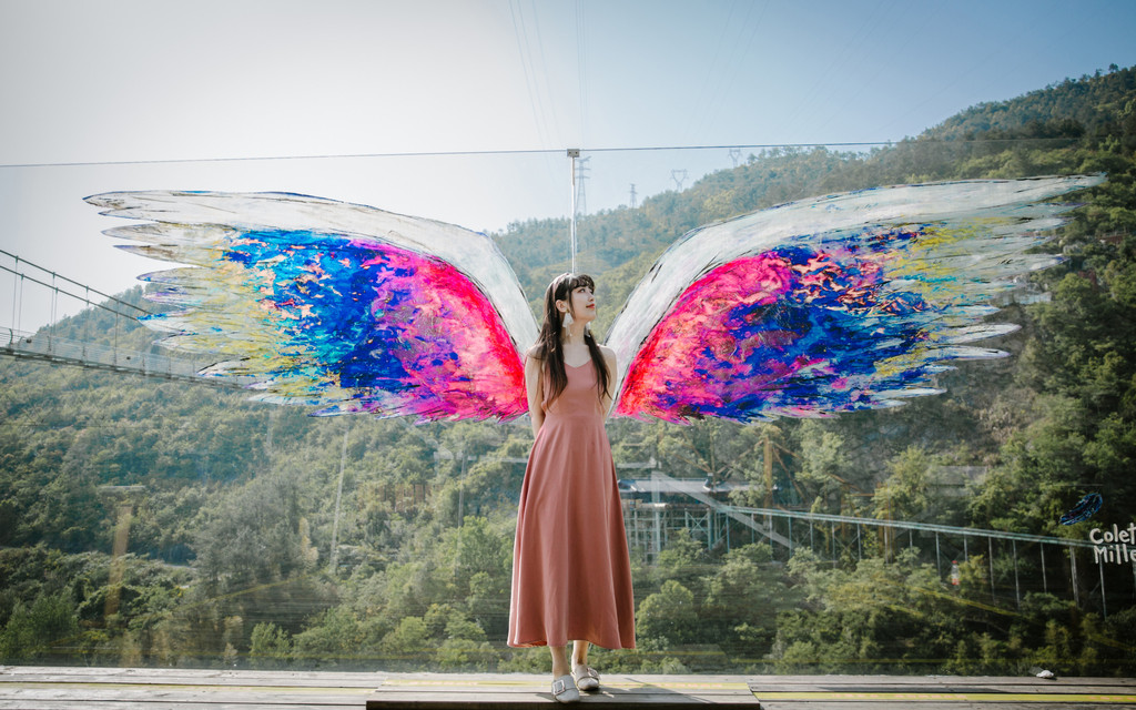 火遍全球的天使之翼我猜你肯定知道,而桐庐的垂云通天河也有这样一个网红打卡点,这可是由来自美国洛杉矶的著名设计师ColetteMiller设计并亲自到现场制作完成的,同款于世界最高楼迪拜塔的“天使之翼”。