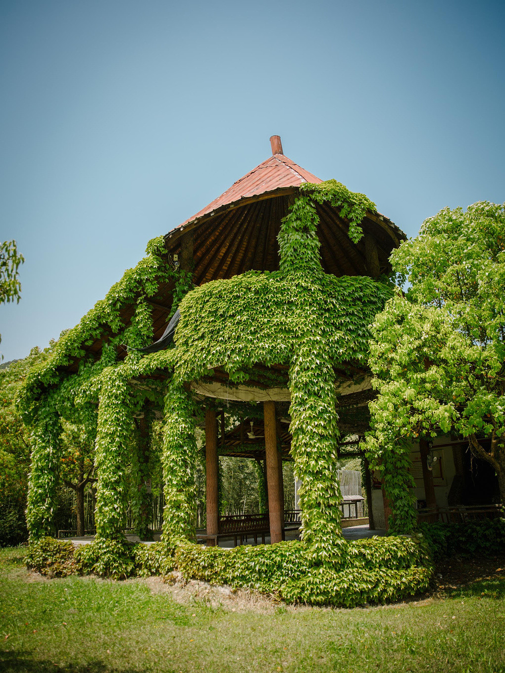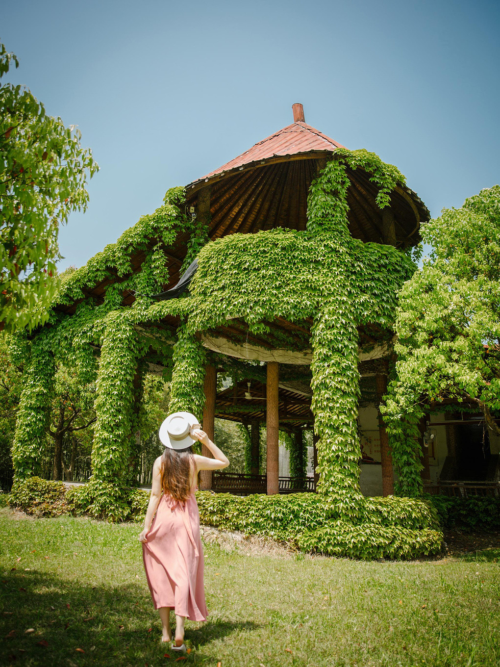 茵茵绿地,树叶婆娑,走过里面一处格外精致的阁楼,似乎在每个不经意的转角都能偶遇一片爬满藤蔓的院墙;