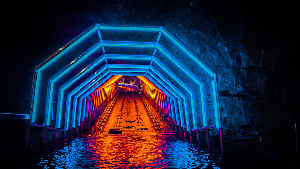各种不同颜色的彩石撞击在一起,随着移动的荡舟移步换景,仿佛在深海里慢慢的游动,让人怀疑是否来到了彩虹隧道。