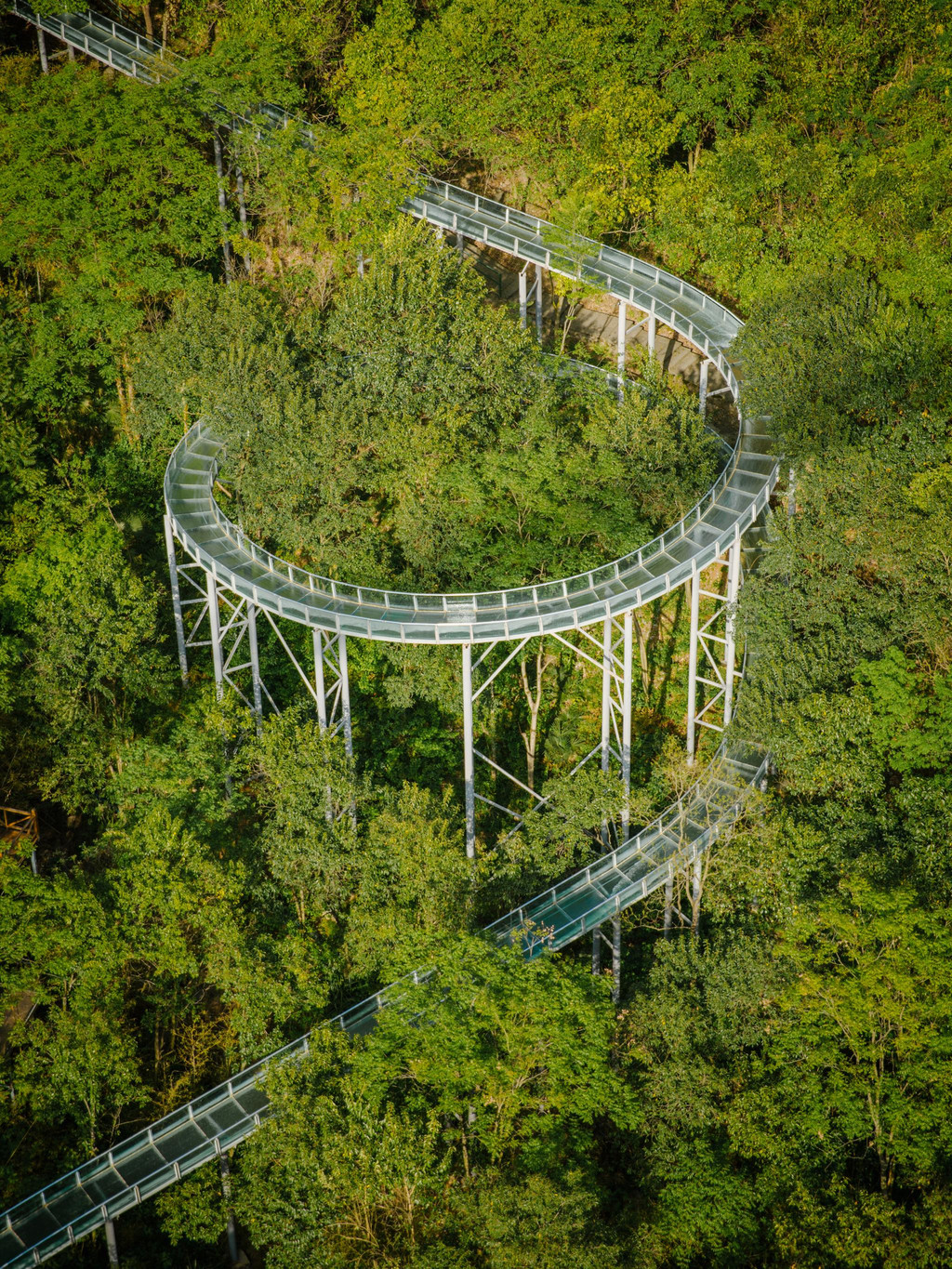 若是害怕体验这项穿梭林间的刺激项目也不要紧,也可以从旁边的木栈道一路下山,大概十几分钟的样子就可以到达山下。
