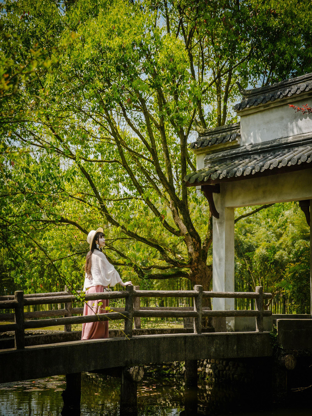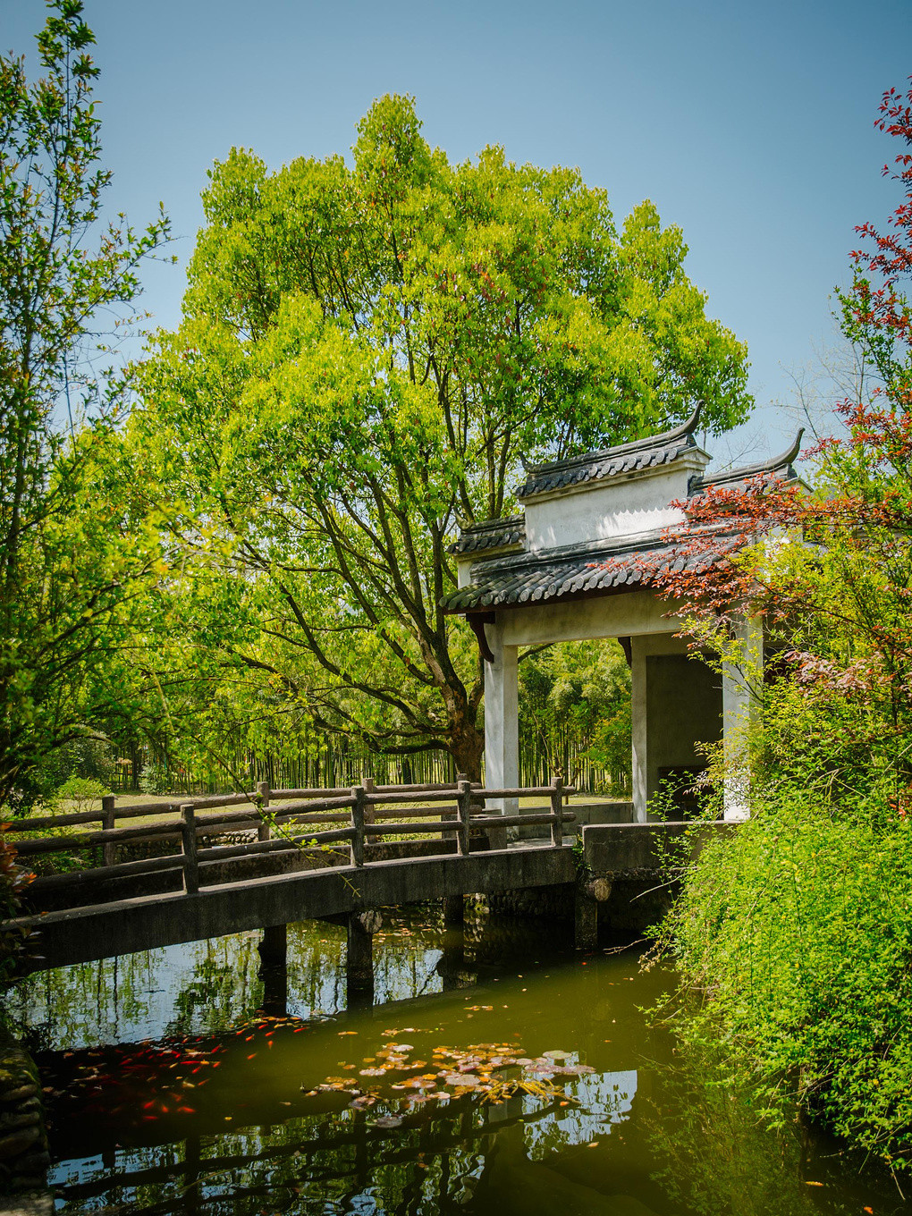 越往里走心里也会越加欢喜,清风绿树,与沾染了花草意韵的细碎微风,和着脚下涓涓清细流入诗成词,定格成一帧恬静惬意的田园诗画。
