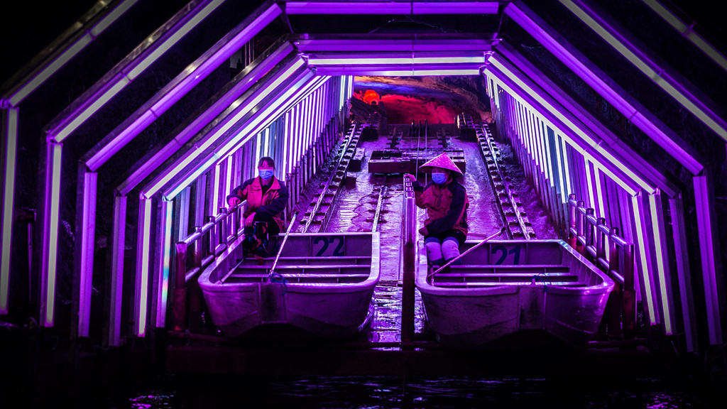 继续往前,在路的尽头会看到一座被称为国际首创的洞穴电梯,连人带船从一级暗河送升至8米高处的二级暗河水道,惊险又刺激。