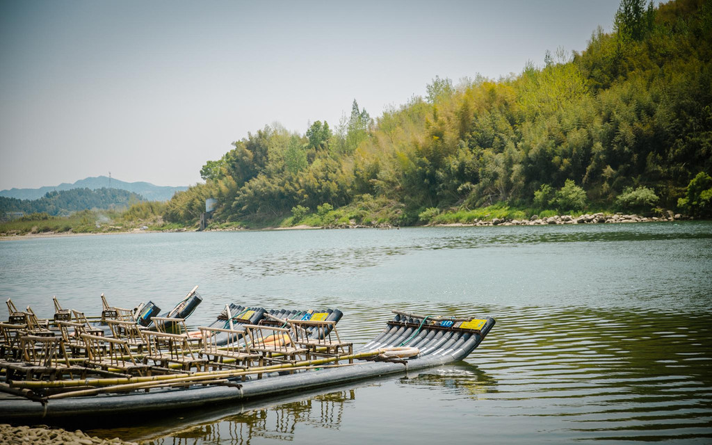 一句“钱塘江尽到桐庐,水碧山青画不如”,恰如其分地赞赏了浪石金滩的醉人美景!沿着路穿过野炊区,还可以在前面的江边体验一把竹筏漂流的乐趣。