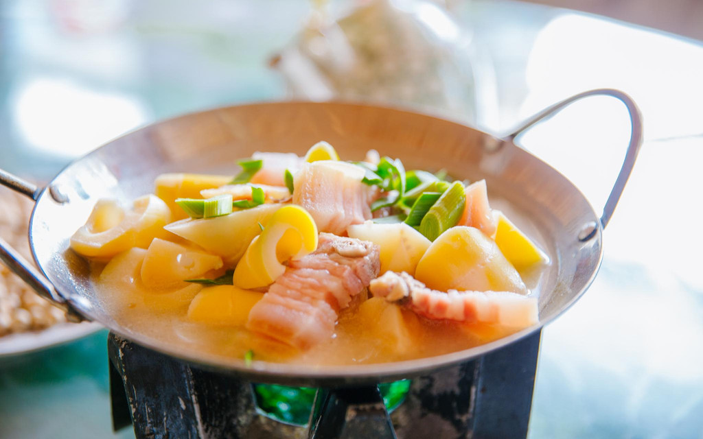 桐庐是鱼米之乡,靠山吃山靠水吃水,这里的菜系偏农家一些,食材新鲜又自然,4月份的时候正是吃笋好时节,点了当地的青笋,配上咸肉格外的鲜;