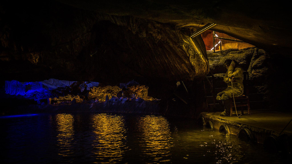初入洞内,骤降的温度绝对会使你的汗毛瞬间立起,冰爽到极点!适应了一会继续乘船其中,船娘们也会划着小船热情的为我们讲解溶洞里的喀斯特岩溶地貌,而你则需要不时的变换身姿,不然极有可能会中招撞上去,偶尔也会有一两滴天然的岩水从天而降,猝不及防的滴在来往游客的脑门上留下一阵清凉,尤其是到了夏天,洞内潮湿而凉爽,因其常年18度的凉爽气温被大家称为避暑胜地,也被当今世人誉为“地下第一河”。