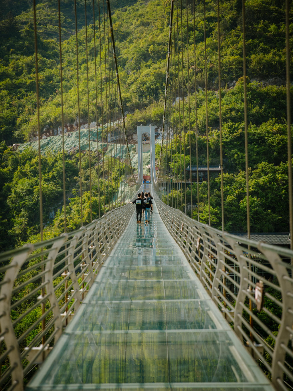 往前走就是“凌云天桥”,这座玻璃桥长300余米,相对高度约150米,经历前后四年的设计论证和施工建造,更是展现了现代工程和大自然景观的完美融合。