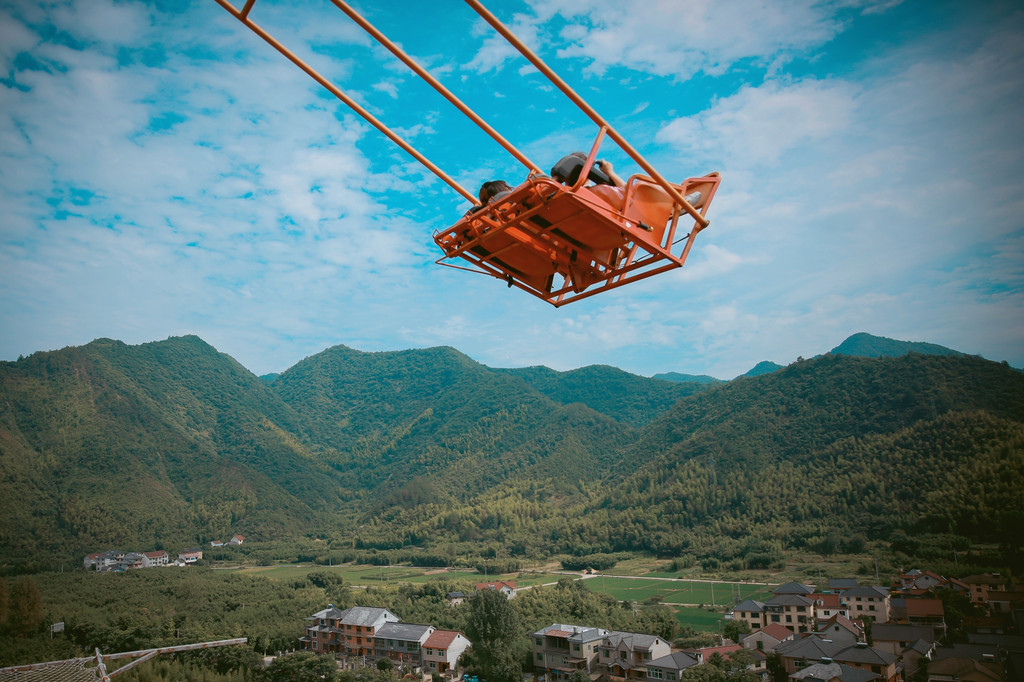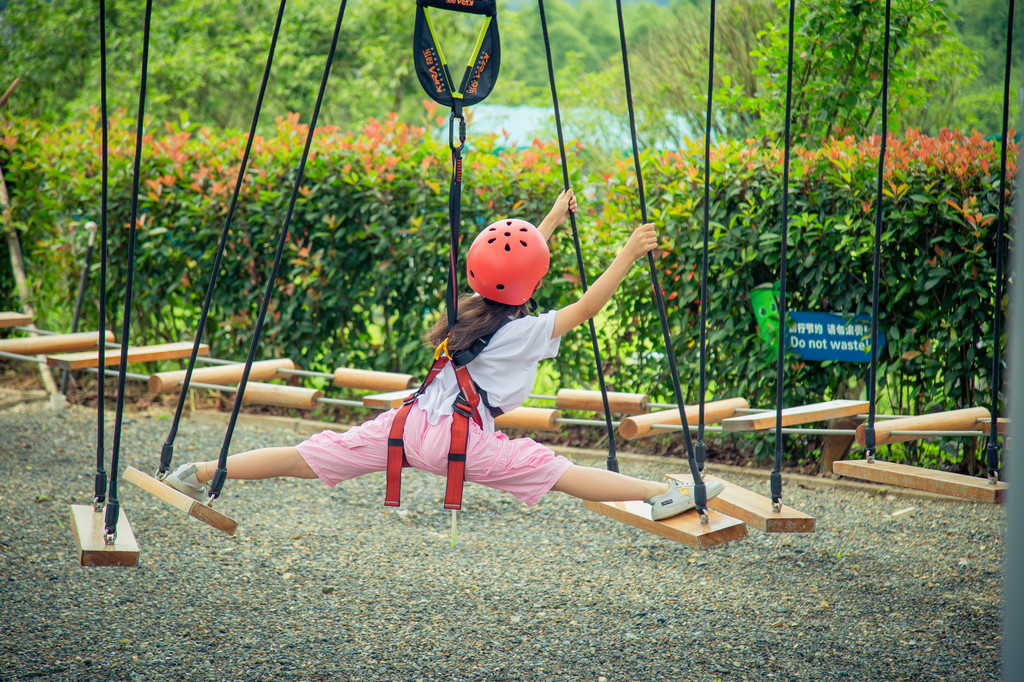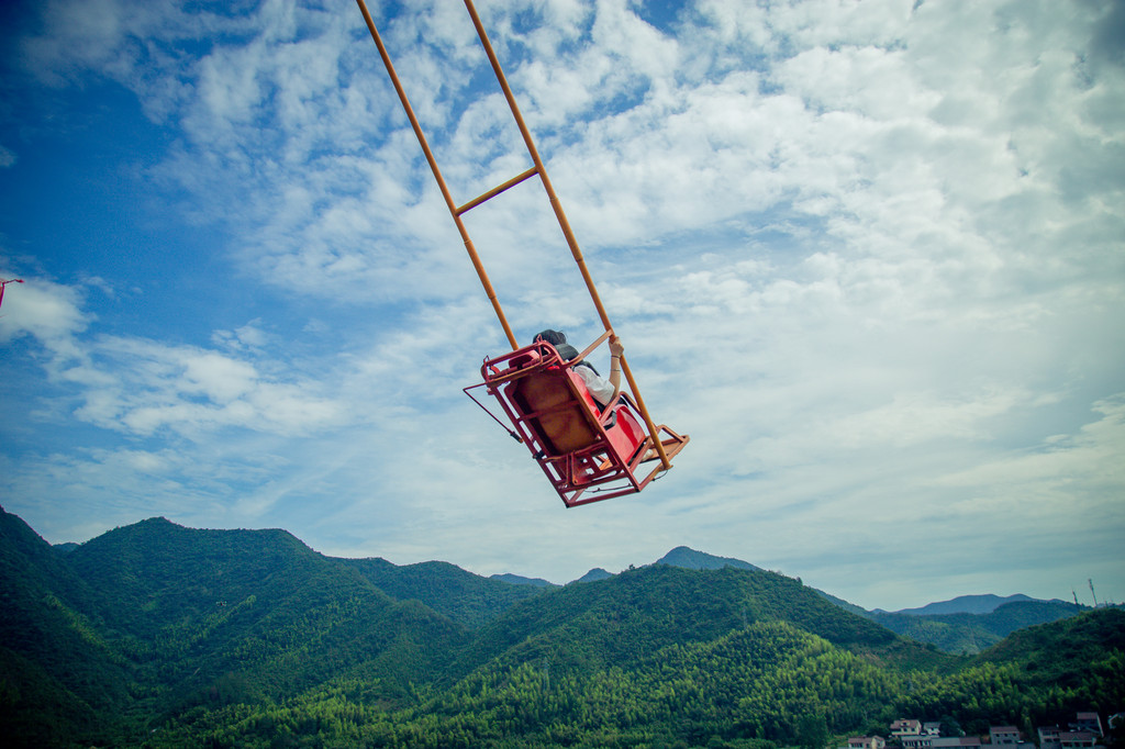 山上有2个项目,另一个是悬崖秋千,一定要先坐悬崖秋千再玩玻璃滑道,要不然得再爬一次山了,有双人的和单人的,单人会更加刺激一点,但是情侣和亲子可以坐双人的,一起感受荡出去的失重感,觉得非常有意义,而且,这边的悬崖秋千,小孩满1.2米就能玩了,可把紫钰开心坏了,想了很久的悬崖秋千,终于玩到了。