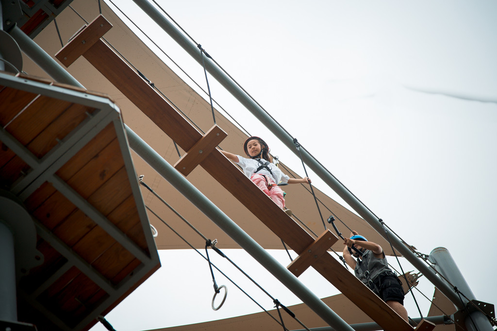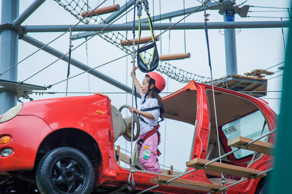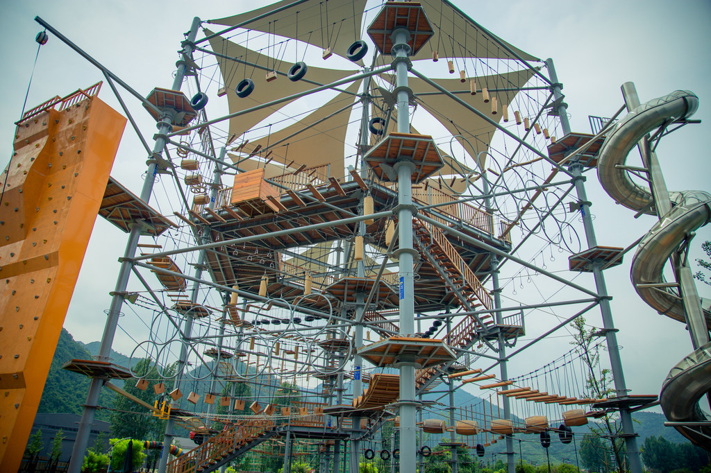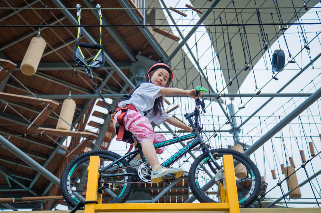 一直以来,我都在给大宝体能训练,所以在探险运动这一块是强项,大宝看到探险塔的那一刻,是拦都拦不住。显然已经想玩很久了,穿好装备,勇往直前,恨不得每一条道都要挑战一下。强烈建议带着孩子去挑战一下,真的非常锻炼人。