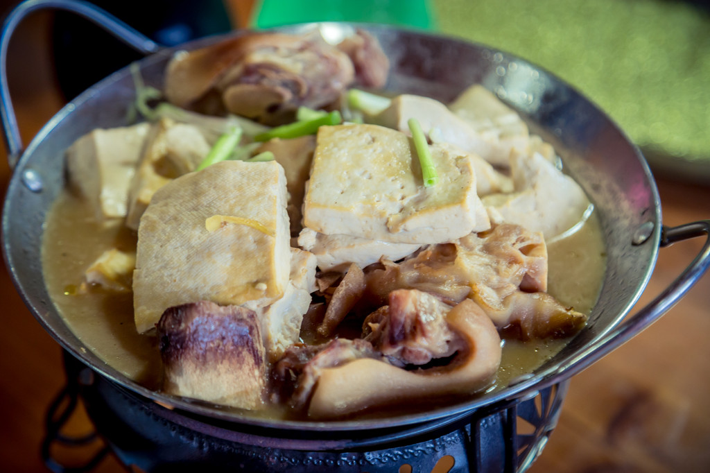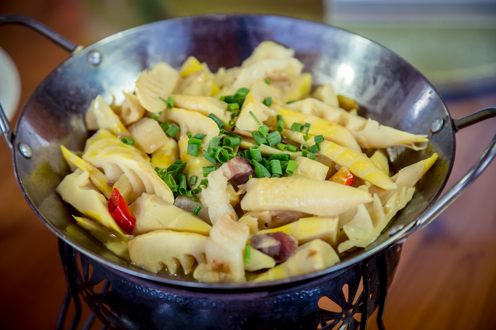 中餐晚餐都是在后溪河畔的酒溪阁,这儿是一座方形尖顶的三层草屋阁楼。建筑古朴巍峨,主要以桐庐农家菜为主,食材新鲜,无污染无公害,呈现出原汁原味的本地美味。