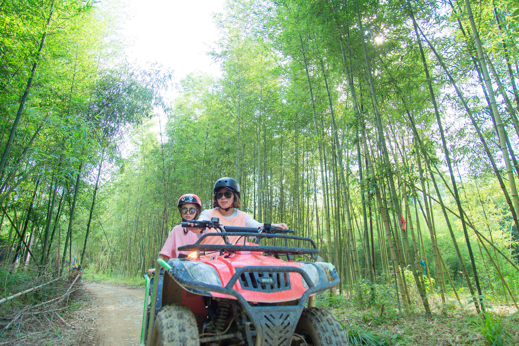 下了山,直奔竹林骑闲,当沙滩车穿梭在竹林迷宫里,是怎样的一种感受呢?在100亩有余的天然竹林间,错综复杂的迷宫赛道上,骑上一辆超级炫酷的摩托车去穿越,惊险刺激,一圈又一圈,都舍不得下车,崎岖坎坷的赛道,就像我们的人生一样,但总是有办法跨过去的。