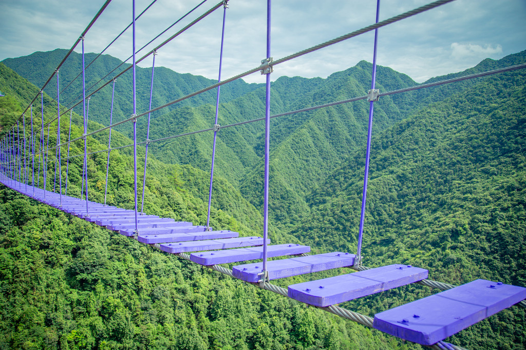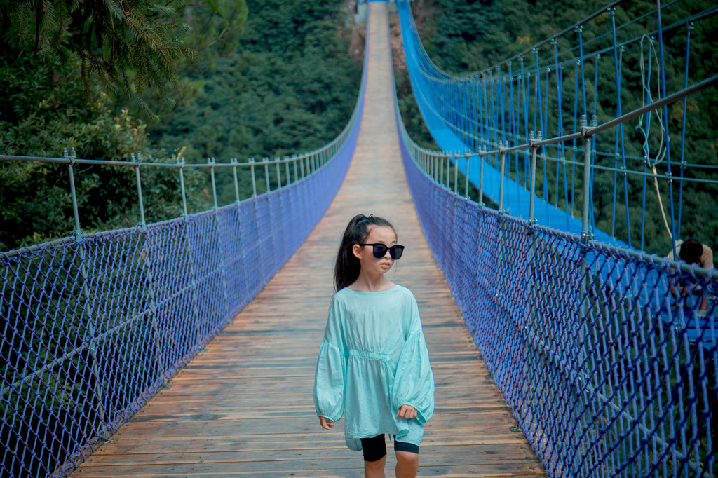 第一站,是桐庐天子地打造的空中乐园,在一片青山间,一朵紫金花开了……先要走过横跨深谷的云梯天桥,长约300米,连接着两座高山上,摇晃感中,只剩胆战心惊,或是可以选择走旁边的步步惊心,那真的是勇者的游戏!