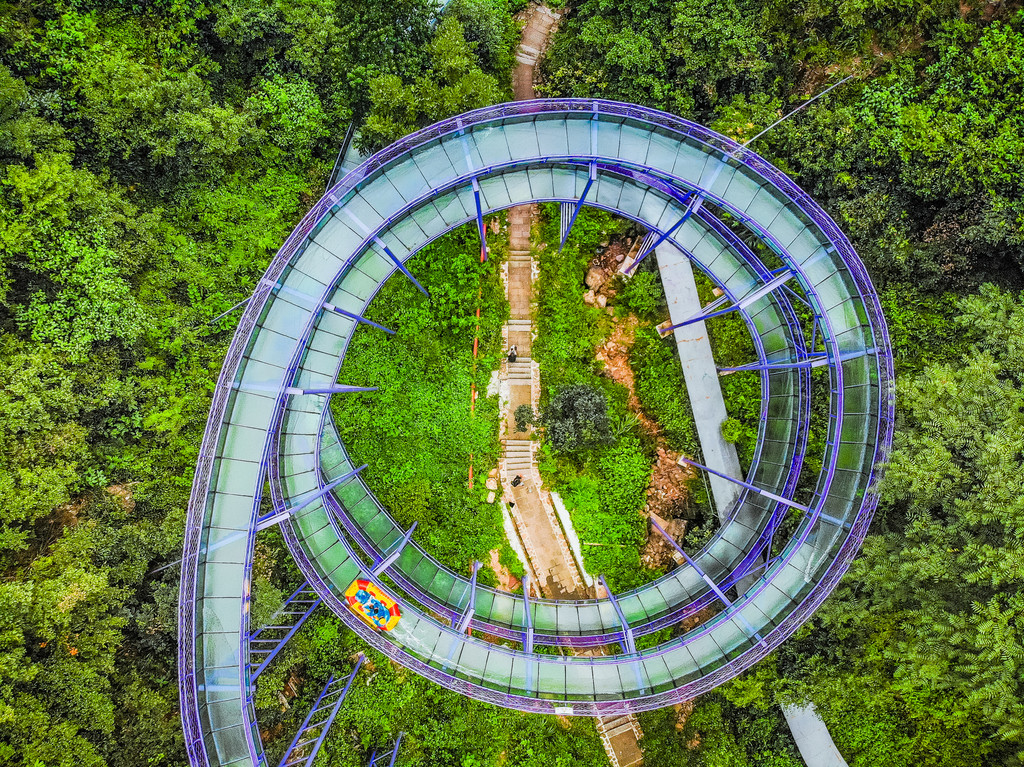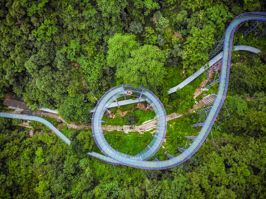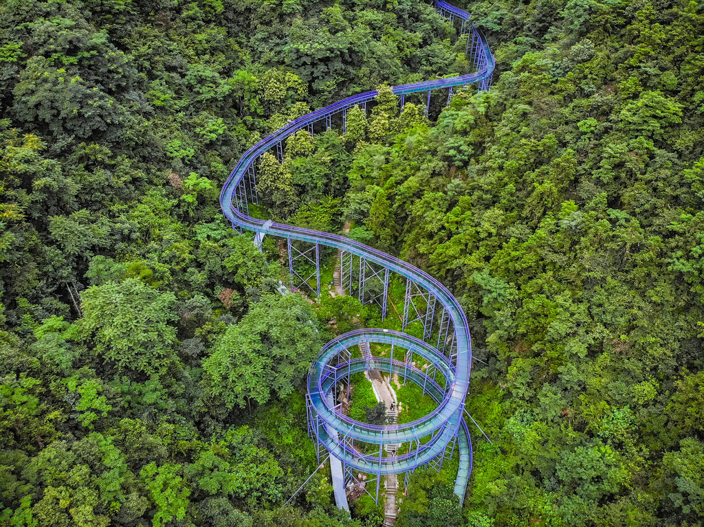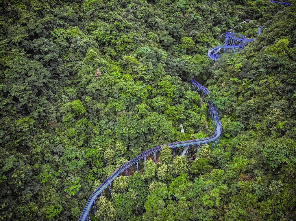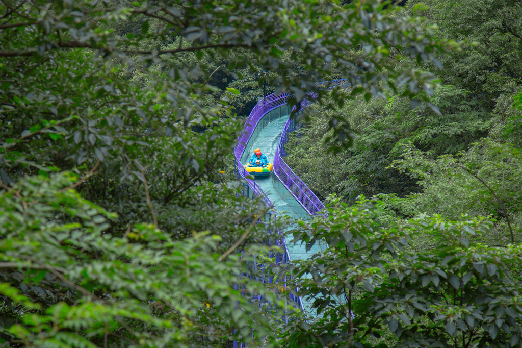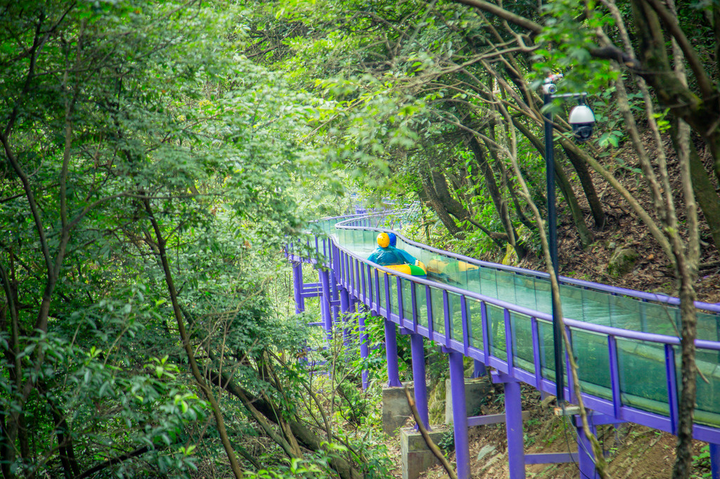 穿过溶洞,是另外一番天地,这是桐庐天子地藏在山间的世界纪录最长的漂流紫龙峡高空玻璃漂流,像一条巨龙盘旋在山野中,一趟漂下来大约十分钟,就如腾云驾雾,这种山林间的飞跃,定是让人流连忘返!