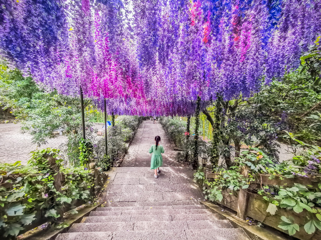 遇见桐庐天子地,在源于民间传说的一个神话故事里!走过长长的紫藤长廊,就像一场穿越,紫花似蝶,令人心旷神怡。突然间,想起那句诗:占尽人间清绝事,紫藤香起竹根炉。