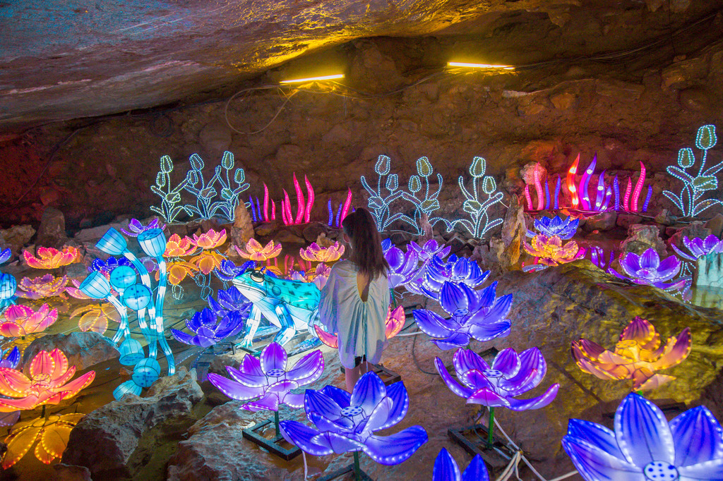溶洞面积16000平方米,是国内最大的竖井式溶洞,我也是第一次游览一个很长很长的溶洞,高阔的洞天、幽深的暗河、悬空的瀑布、密集的钟乳石,似万千神斧凿就,千奇百怪,汇成气势雄伟的洞穴大观。