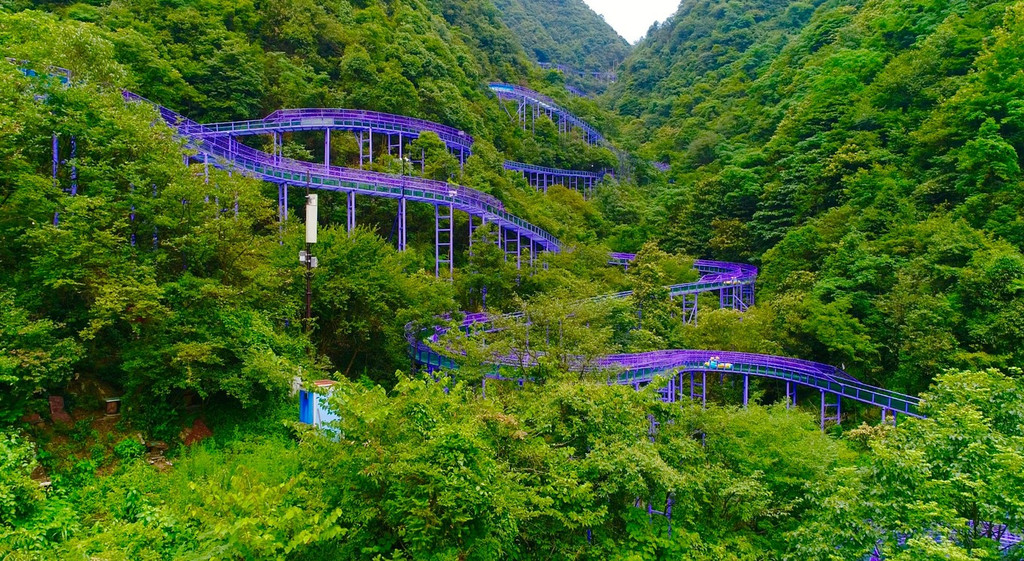 滑道犹如紫色飘带回旋在青山之间,颜值特别高