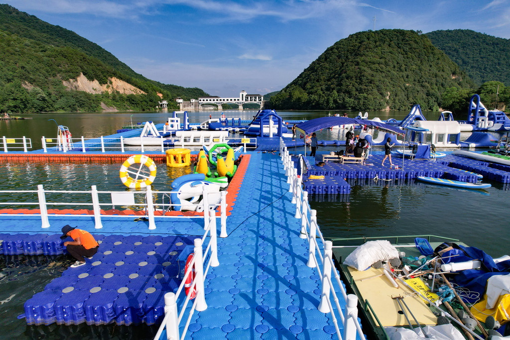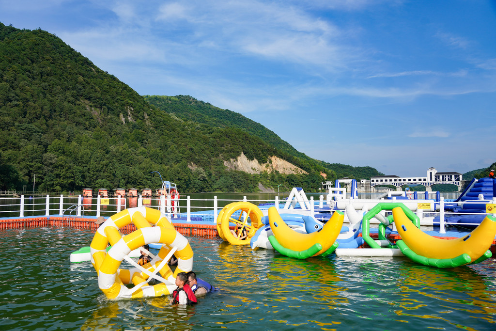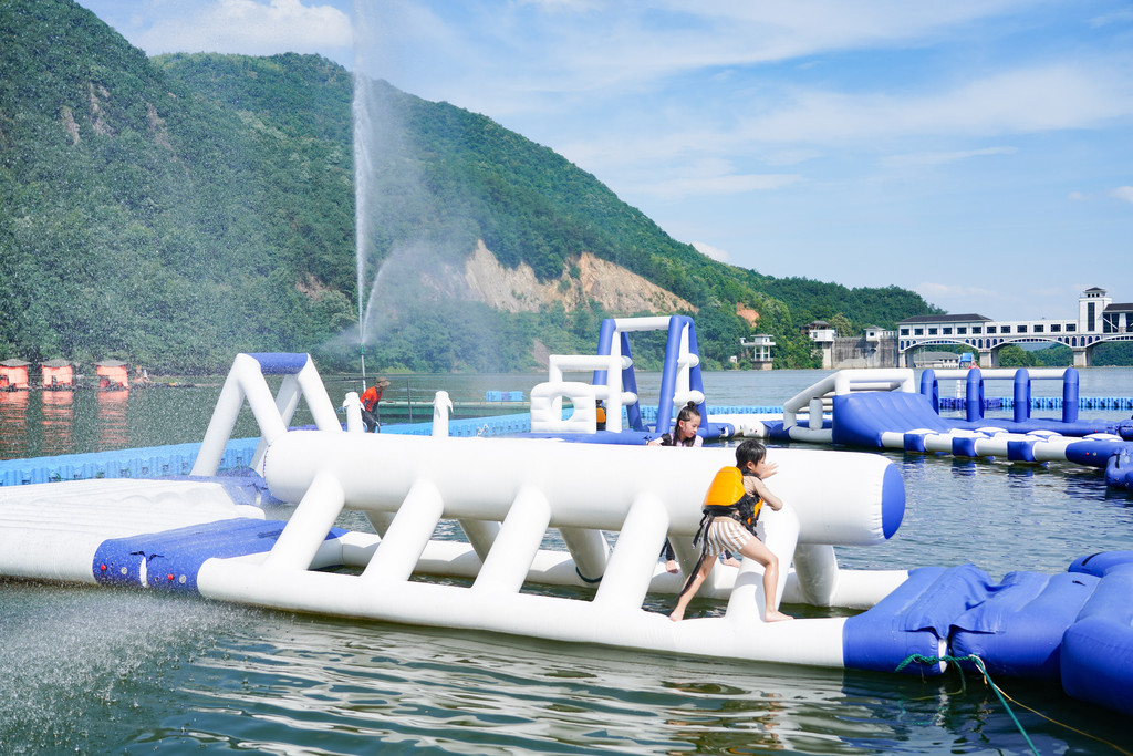 湖心岛造浪乐园是一座搭建在水上的嬉水园,有40多个闯关模块,等待大小朋友来解锁。