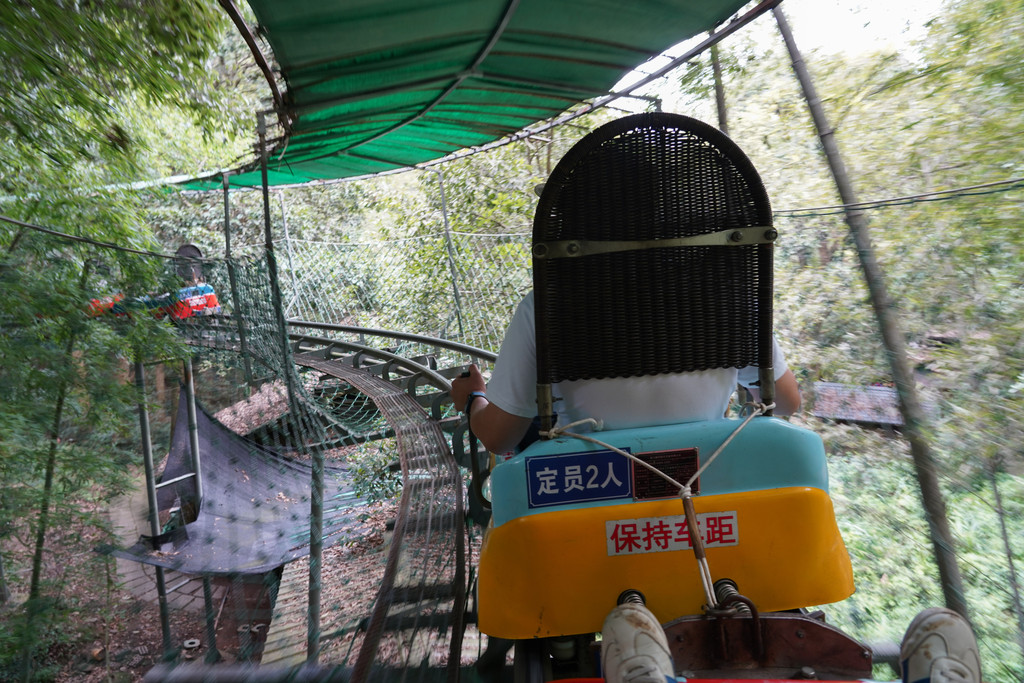 野槠林区内可以体验云霄飞车,两人一车,速度可由游客自行控制,可快可慢,如果说富春云梯是上山的偷懒神器,那么云霄飞车就是下山的偷懒利器。