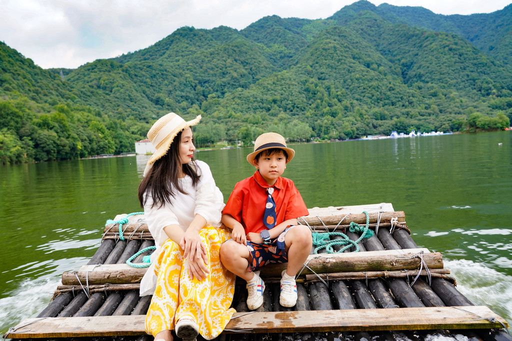不得不说景区实在太懂游客心,除了现代感的玻璃滑道漂流外,景区的逍遥岩岭湖还可以体验竹筏漂流,乘坐竹筏泛舟湖上,宛如一叶扁舟行驶在逍遥岩岭湖,峰峦叠翠,湖光山色相映成趣,别有一番诗情画意。