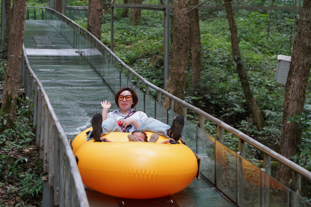 夏天还有什么比漂流更快乐的呢?景区考虑周全,云霄飞车省了一半的下山脚力,另一半交给了玻璃滑道漂流。富春桃源景区的玻璃水滑道有近百米落差,可以体验360°双回旋漂流,感受森林中的速度与激情。