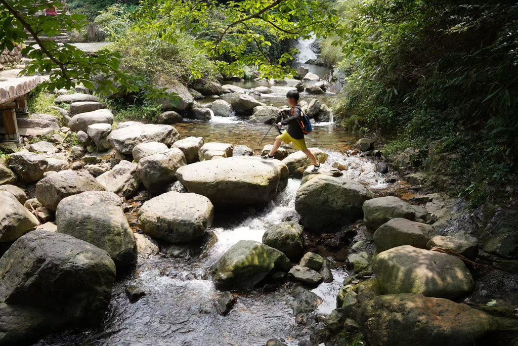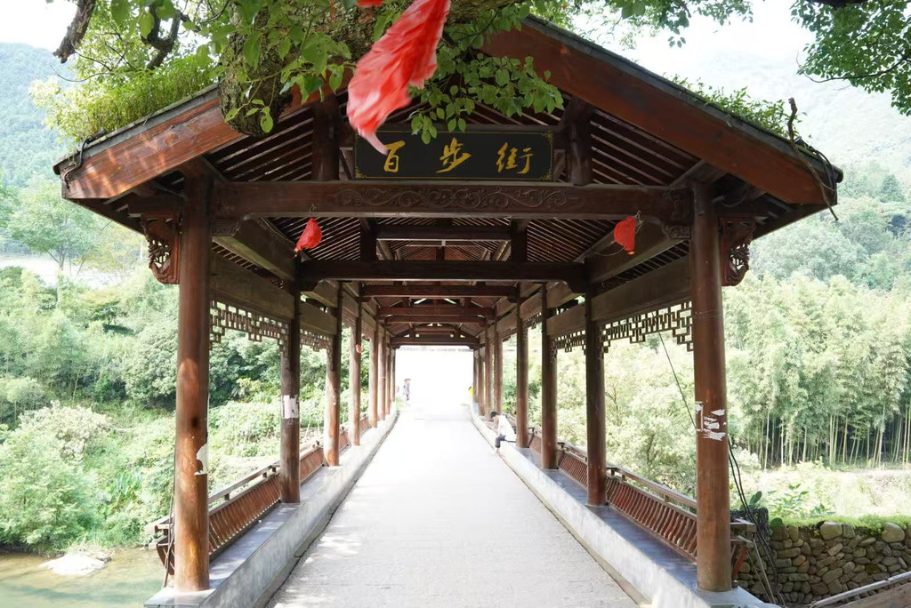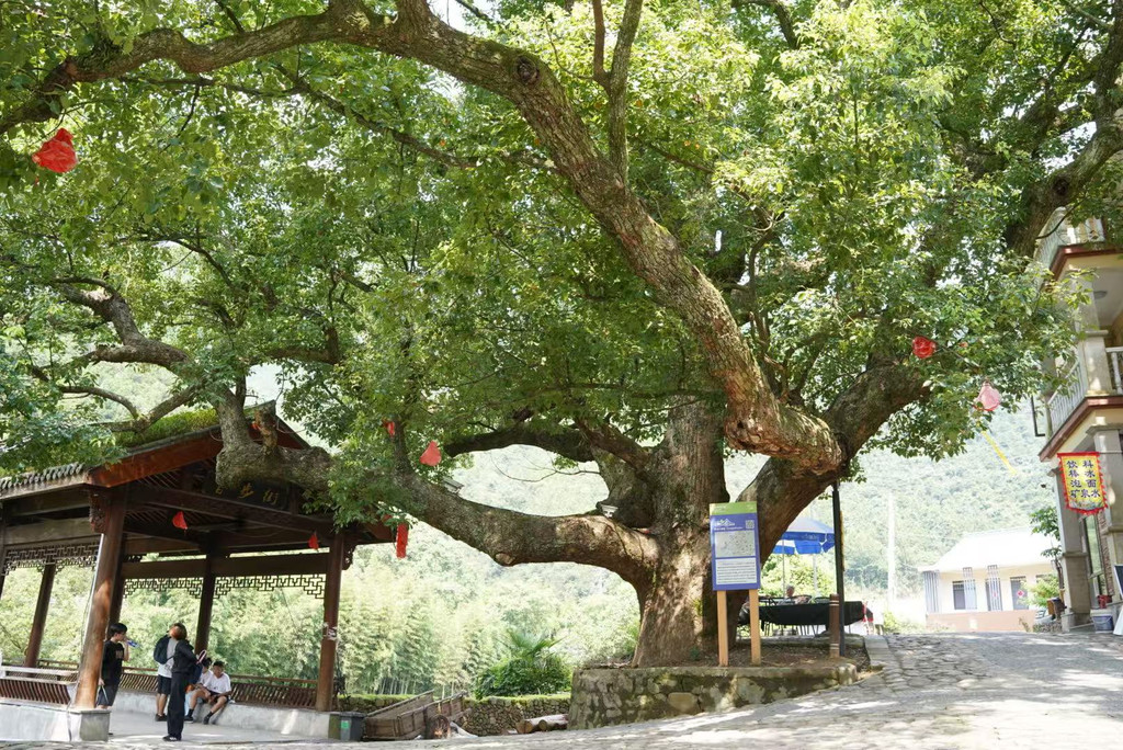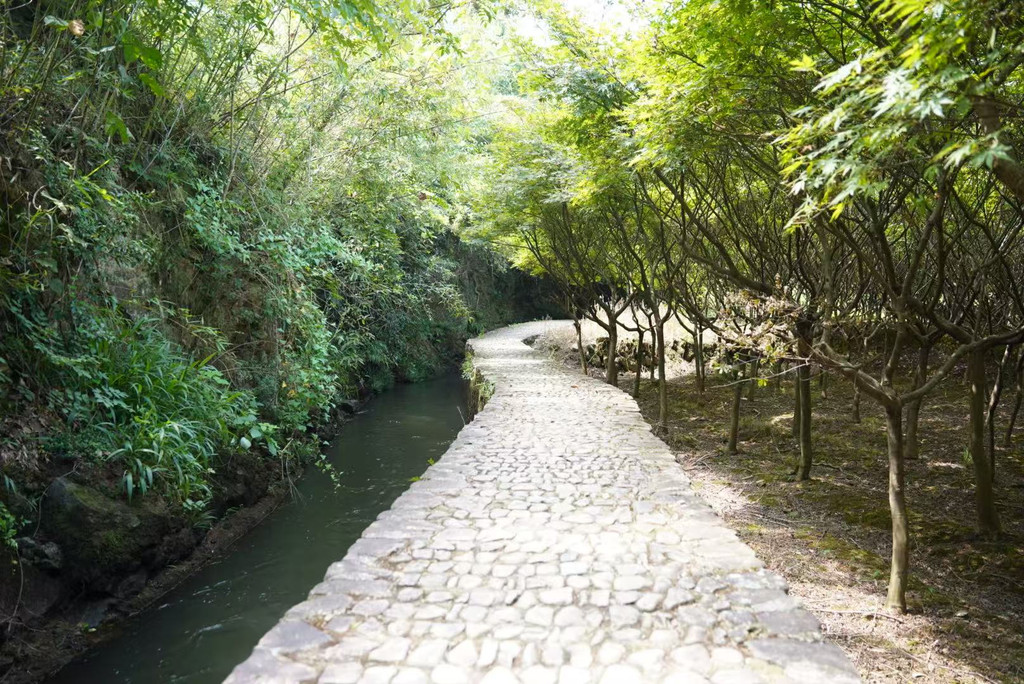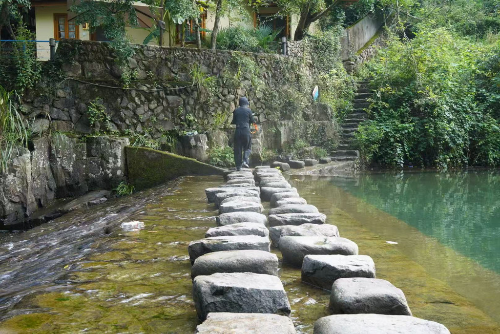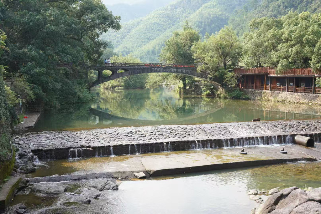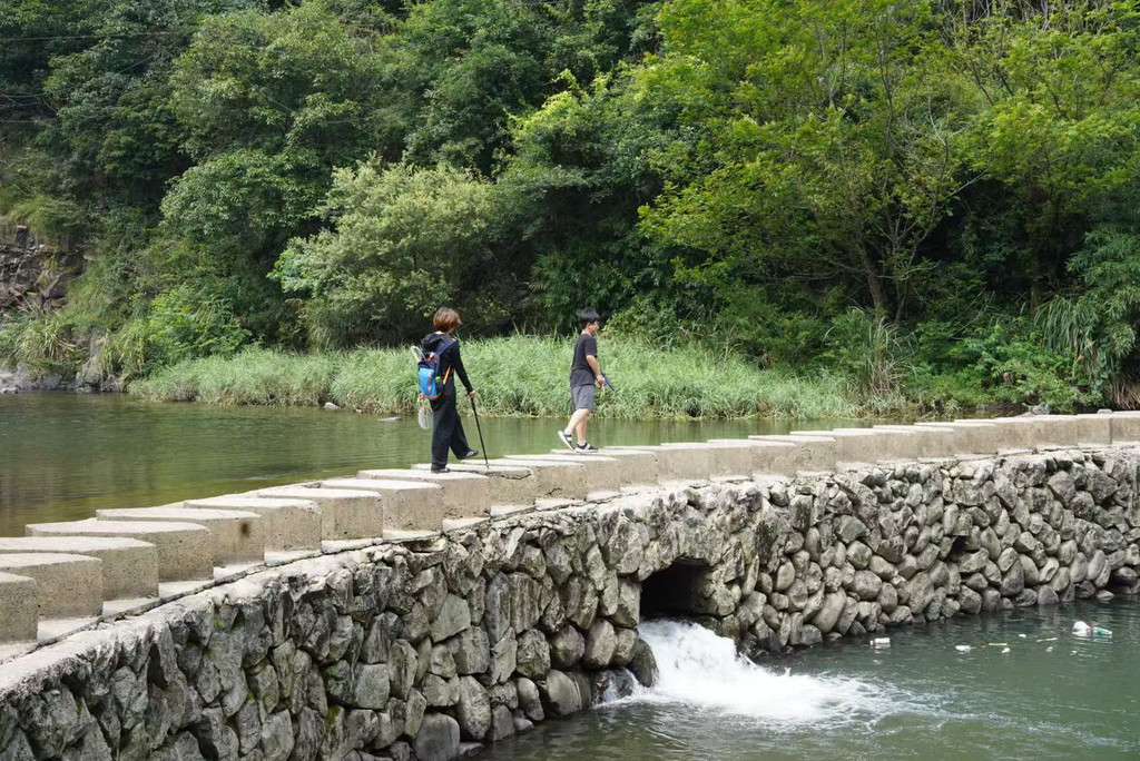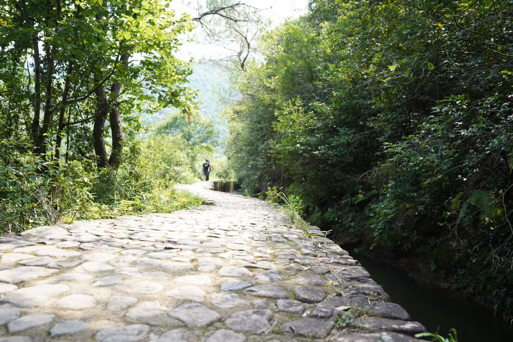 早上:7:35自驾前往此次出行的最后一站,7:55抵达芦茨村停车。打车去往石舍村,开启马岭古道徒步之旅。石舍村保留了许多明清建筑,很多当地村民开的手工坊都值得一逛。石舍村-芦茨村全长约13公里,从石舍村-茆坪村,这段古道相对平缓,适合边走边欣赏风景,是带娃徒步最经典的一段。从茆坪村-百步街,这段古道是山间到田园,穿越大片农田,就能看到百步街旁有一颗千年香樟树,树龄高达1000多岁,为百步街增添了几份古朴与神秘。从百步街-芦茨村,这段古道是整条古道风景最美的一段,沿着清澈见底的芦茨溪漫步,沿途茶园、竹林、古桥依次展开。