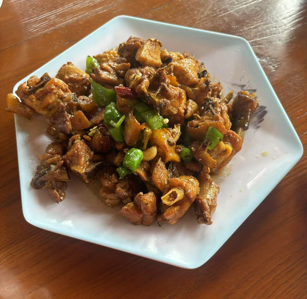 中午:11:30结束了这3个多小时的“特种兵特训”之旅。在芦茨村溪畔人家用午餐,他家的生炒鸡很下饭。