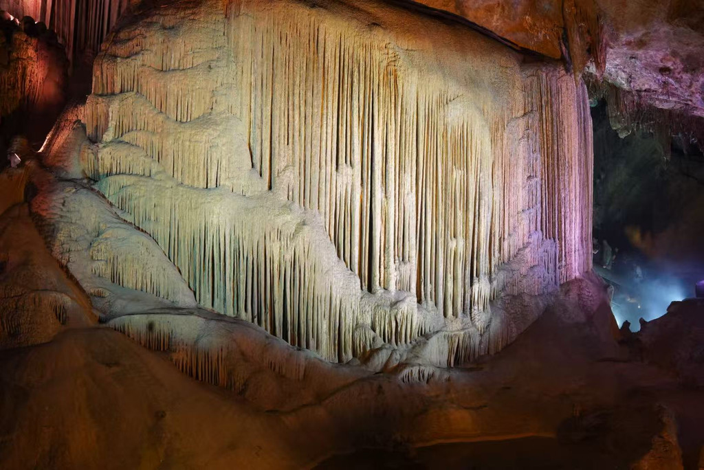 下午:14:50自驾前往此次出行的第二站,15:20抵达瑶琳仙境,洞内17°C恒温简直是大自然的空调房,洞里还有超震撼的钟乳石奇观,银河飞瀑——高达30米的石瀑布景观,瑶琳玉峰——形似玉女的美景石像,瀛洲华表——特殊形态的钟乳石。